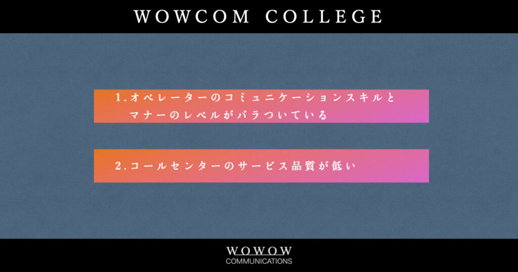 - オペレーターのコミュニケーションスキルとマナーのレベルがバラついている