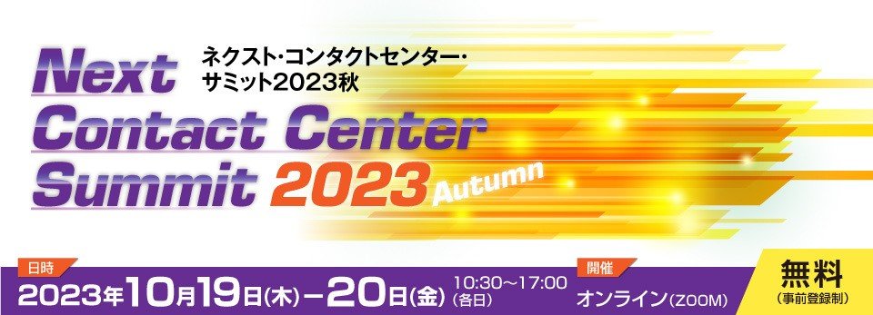 当社は、株式会社リックテレコム主催「ネクスト・コンタクトセンター・サミット2023秋」におきまして、10月19日(木)「『働きやすい職場』づくり」のセッション枠[D1-2]及び、10月20日(金)に「顧客理解×CX設計」のセッション枠[D2-2]に登壇いたします。